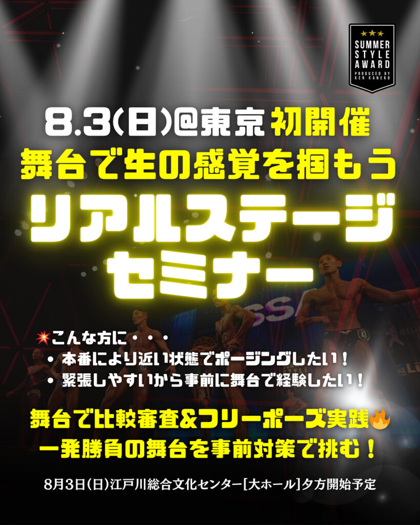 ⚠️ポージングの細かな修正を受けたい方は通常の公式ポージングセミナーをお申込みください( https://s-s-a.jp/seminar )