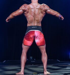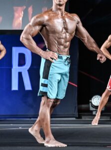 - ①全体的な筋肉量とシェイプ(Vシェイプ)、絞り、バランスを見ていきます。 まず筋肉量で言えばSPORTS MODEL部門との差別化をはかる為、かなりの筋肉量を要します。 それに加えて、絞り具合がかなり重視されます。 その中でその人の身長とバランスが合っているかを評価します。