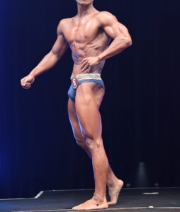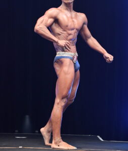 - ①全体的な印象を見る事からスタートします。スポーツモデル(ビースティ)部門ほど筋肉量を必要としません。全体的な肉体の発達状態、バランスの取れたスタイル、自信に満ちた堂々 とした舞台上のパフォーマンスを審査していきます。