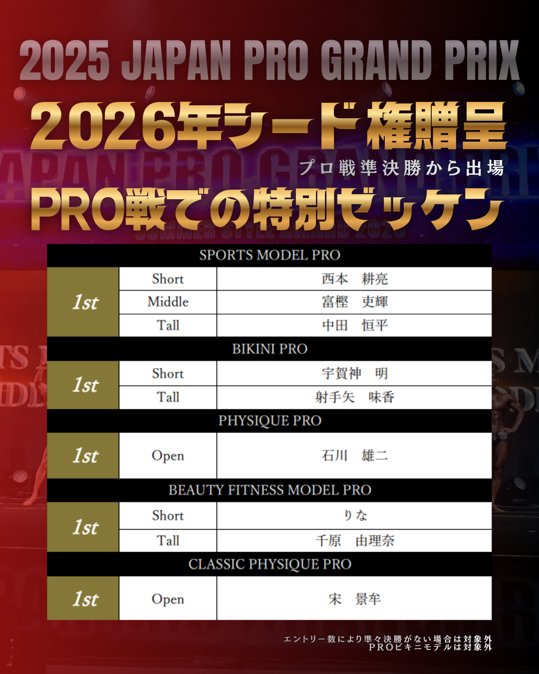 SSA PRO選手のみエントリー可。